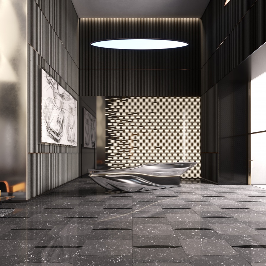 These residences are brought to life in a unique tower. Designed to make heads turn, the building is comprised of an instability of lines, a strong uneven approach, transparency and hidden balances creating a dynamic effect like no other. And when you get closer that you discover the pearl, an incredible suspended sphere that looks as though it defies gravity. The tower is a true geometric symphony of perfection with 19 floors of residential masterpieces, 3 basement levels and a majestic ground floor.