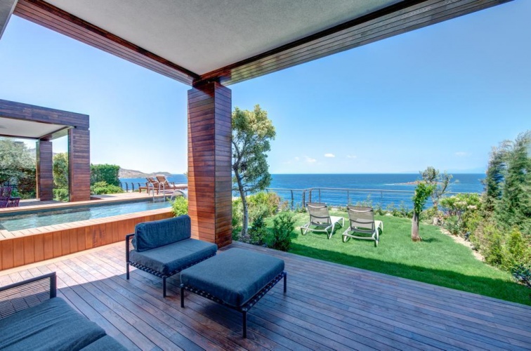 A sea front location with private beach + jetty + cabana in Tilkicik Bay area of Yalikavak.