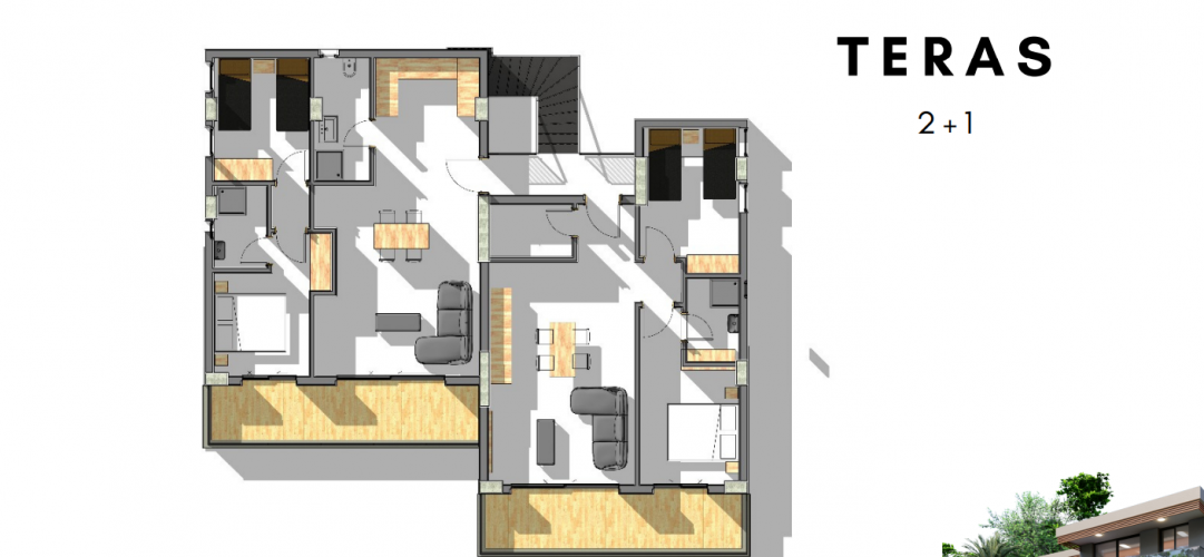 Terrace apartments; 75 m2 including 2+1 and terrace.