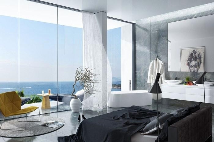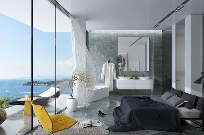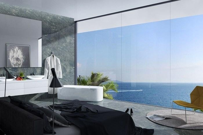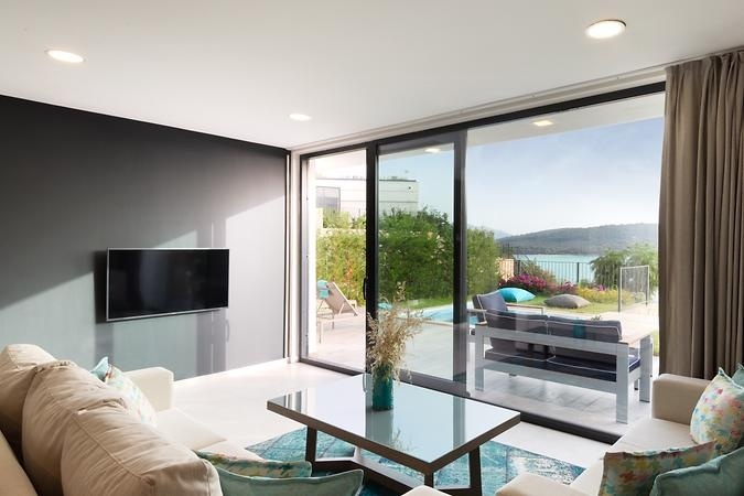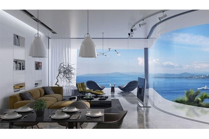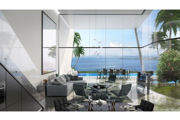 All residences stand out with their modern design and panoramic views of the Aegean Sea.