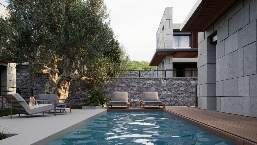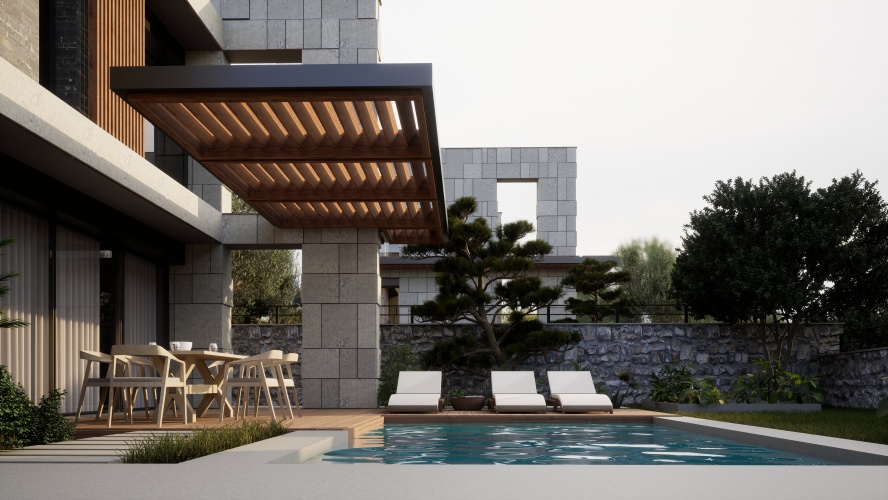 This is a new development of 13 luxurious and private 4 bedroom detached villas with private swimming pool and a private beach allocated to the development, which is situated in Gumusluk, Bodrum.