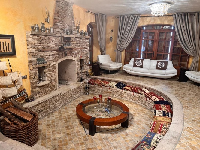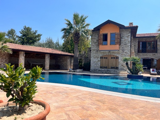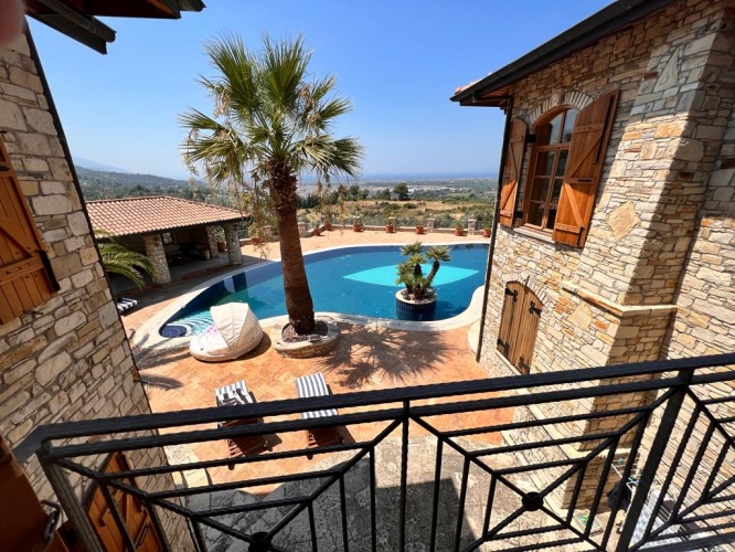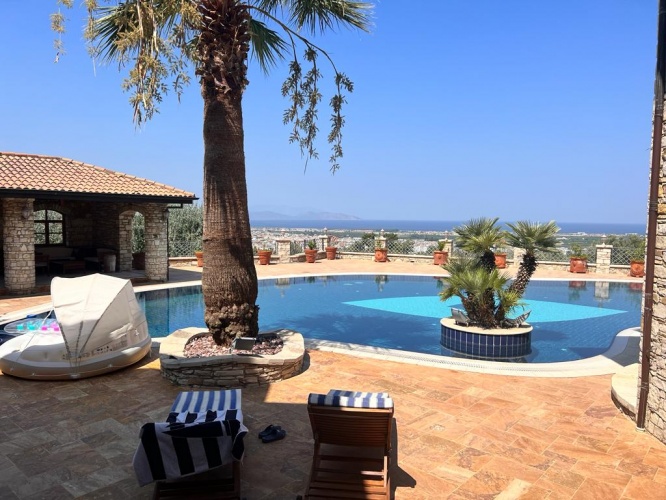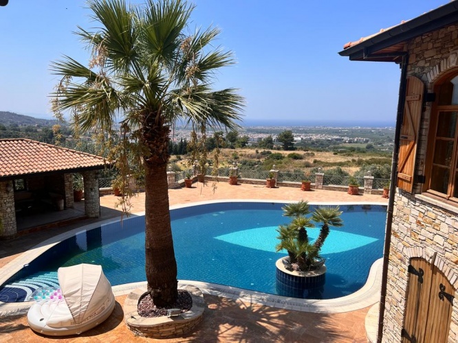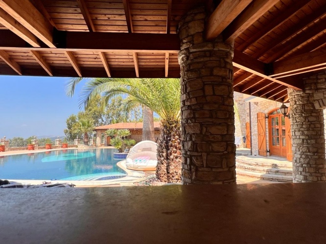 Situated between mountains and the Aegean Sea with an uniterrupted sea view of Samos, this stone Finca mansion was uniquely designed and constructed with care and minute detail over several years by more than 100 workers with natural stones cut and worked by hand in the Ottoman style. The property was built from 2003 and completed in 2008.
