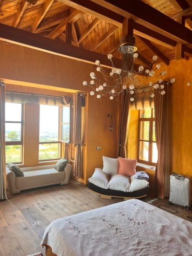 Windows, doors and gates and floors in the bedrooms were made by hand from oak woods obtained from old wooden buildings.