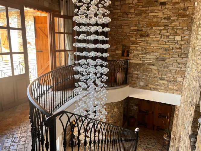 The enclosed grounds are surrounded by natural stone walls in the same style as the villa structure and contain over 250 olive trees, various pine trees and palm trees.