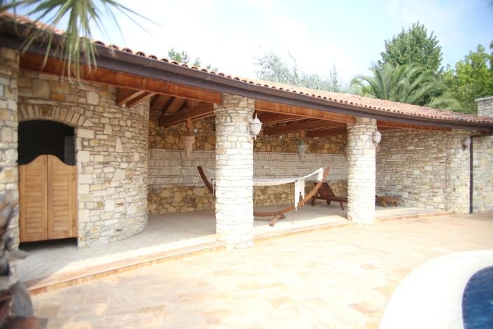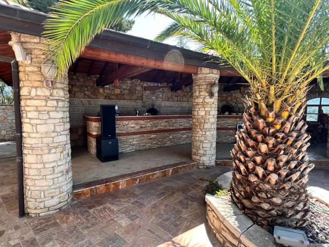 A large pool of about 25 m long and 1.60 m deep. Adjacent is an additional spacious outdoor kitchen with bar and handmade grill, large pizza oven and seating area. A separate covered relaxation area with additional shower and toilet has been built.