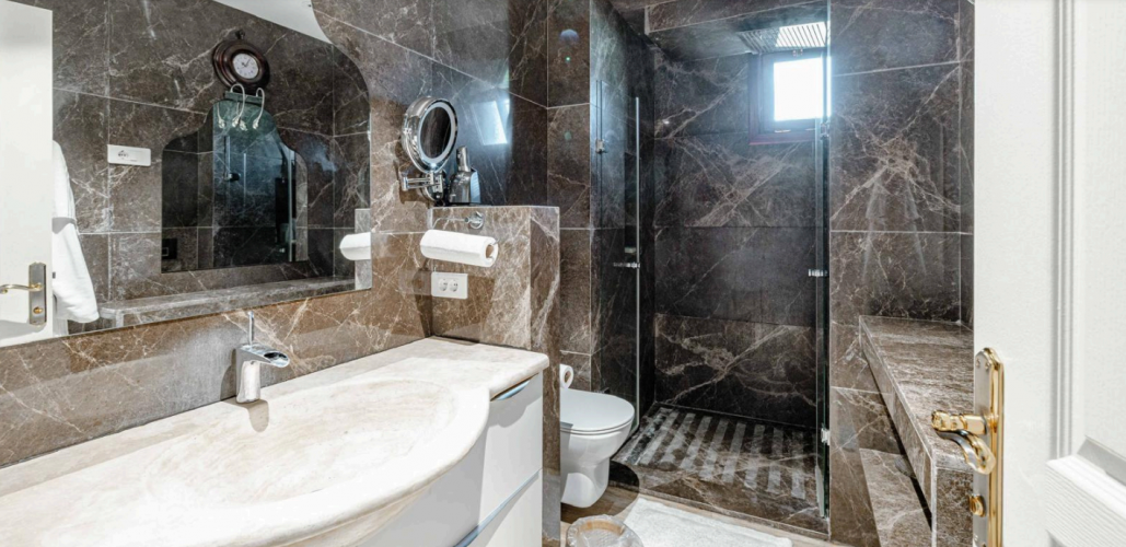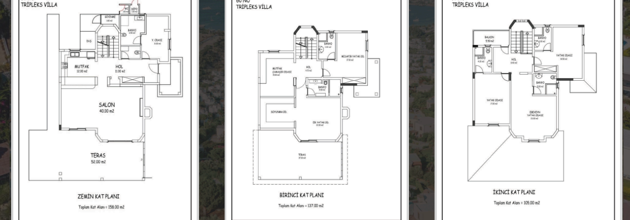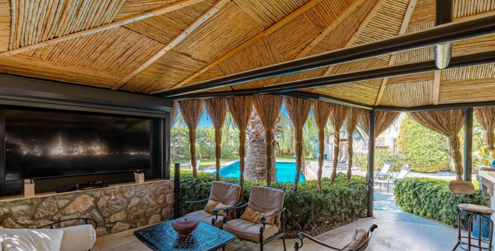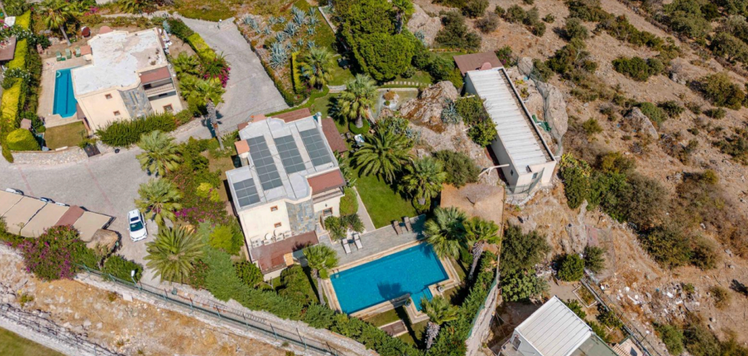 An expansive 6 bedroom triplex villa with private pool on an elite complex with social facilities in Gundogan, only 800 m from the sea. There is also a separate 4 bed villa and 2 workers houses (2+1 and 1+1).