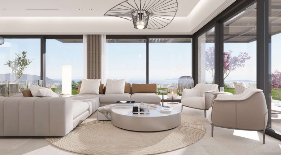 The kitchen has a large island, high ceilings, spacious and light-filled rooms, panoramic sea views and local stone walls and high security solutions. Suitable for year round occupation.