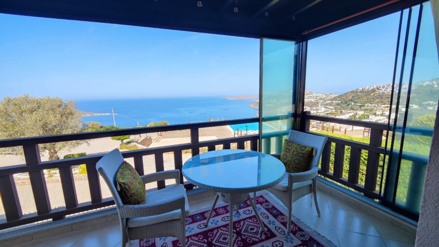 A spacious type A apartment of 100 SQM with full sea views from all rooms looking over the Greek Islands.