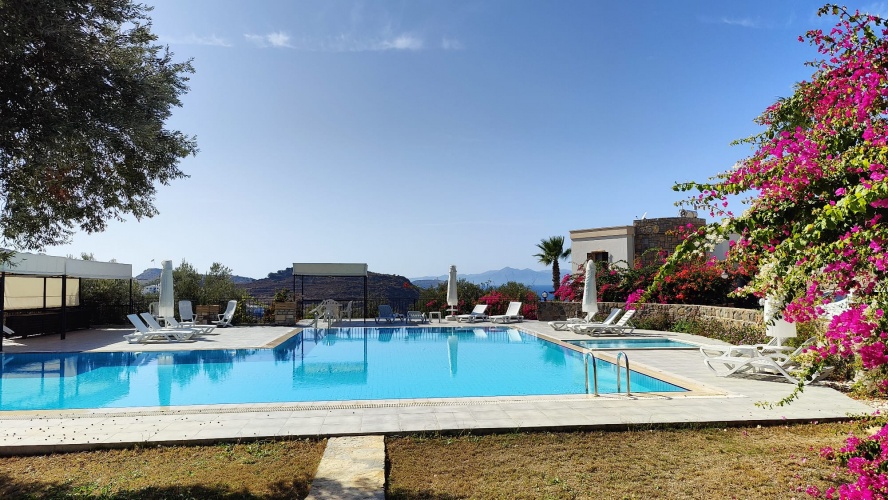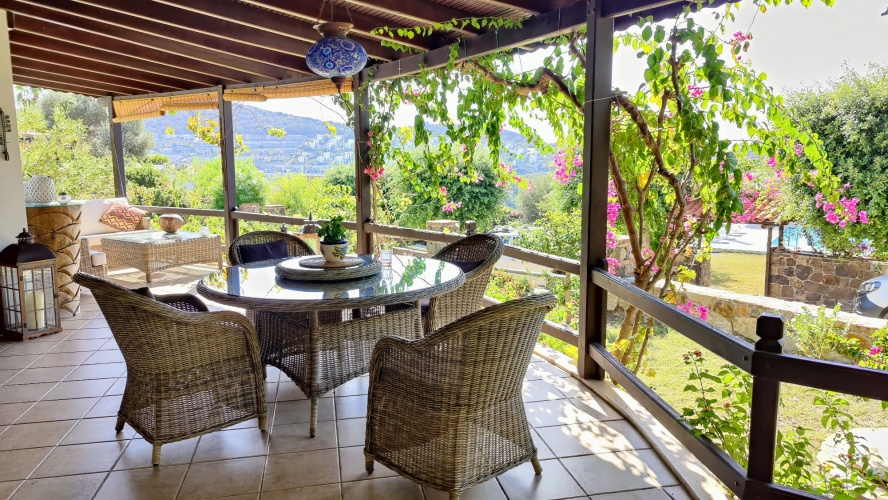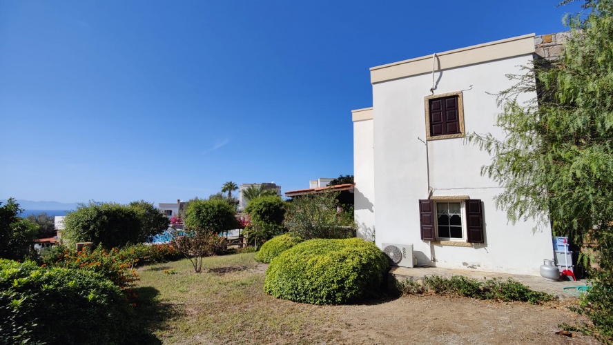 Detached traditional Bodrum stone villa with a full sea view set in a rural location.