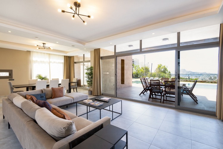 DETACHED TRIPLEX VILLA with 2 lounges, private pool in secure grounds with uninterrupted rural and sea views.