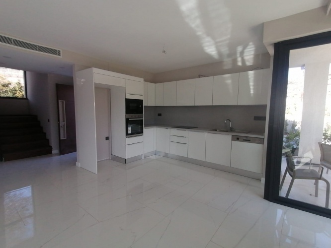 An open plan kitchen adjoins the living area leading out through floor to ceiling sliding doors to the outside terrace area where alfresco dining can be enjoyed..