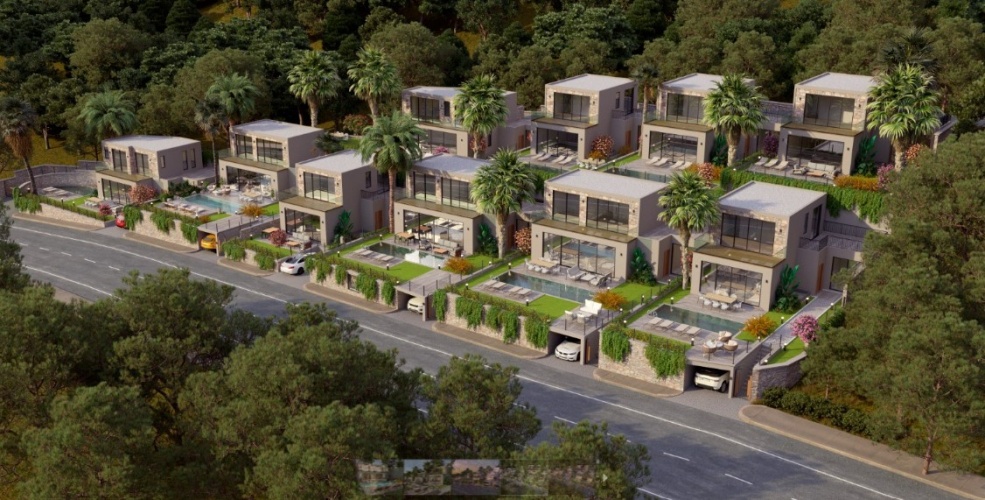 A new project in Konacık, the most valuable residential area of Bodrum, consists of 10 villas, each with a 290 m2 land area and 200 m2 usable area, on a total 2908 m2 land
