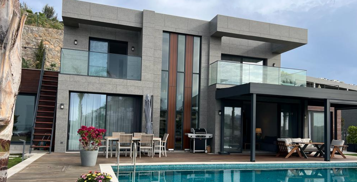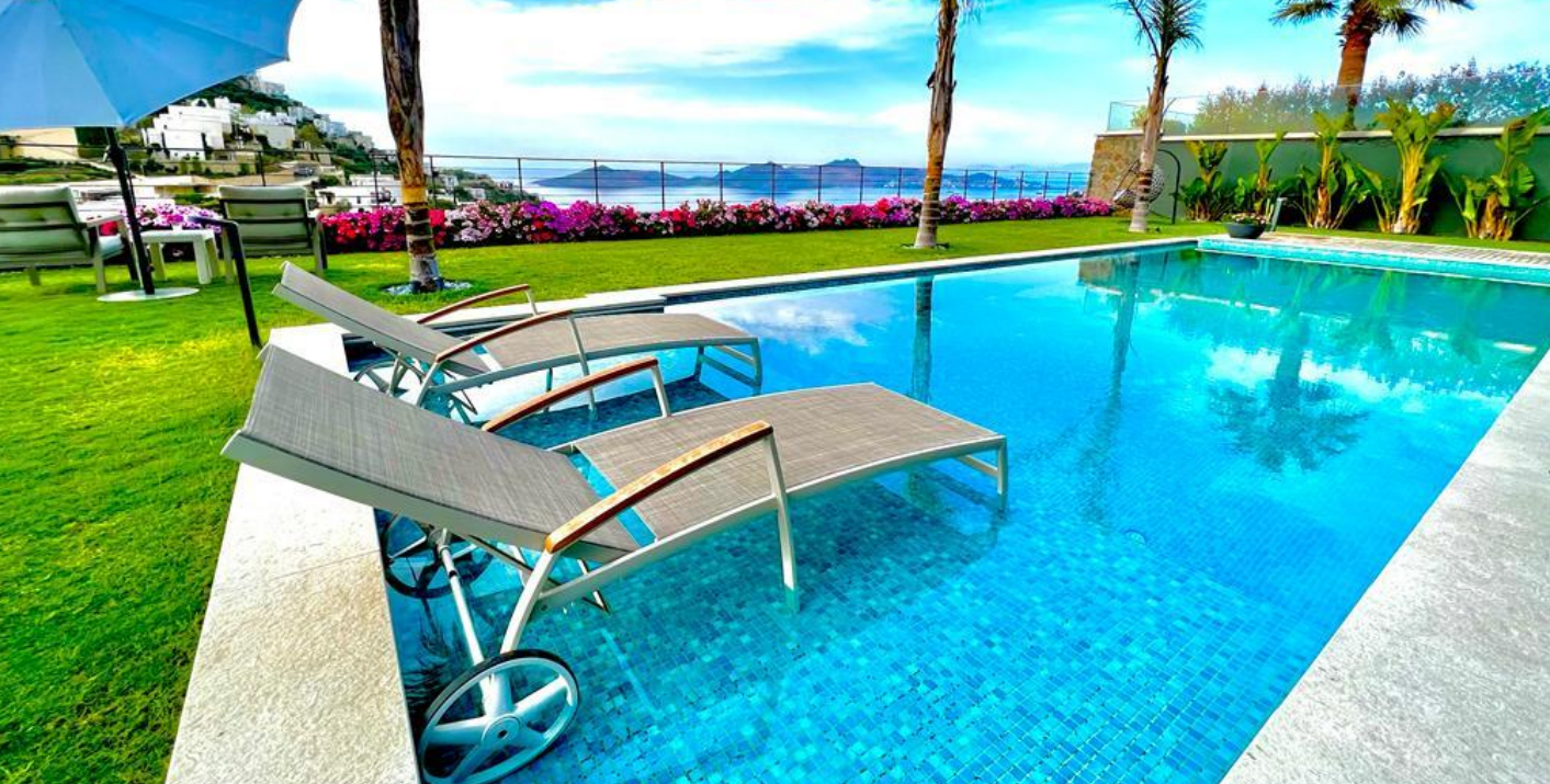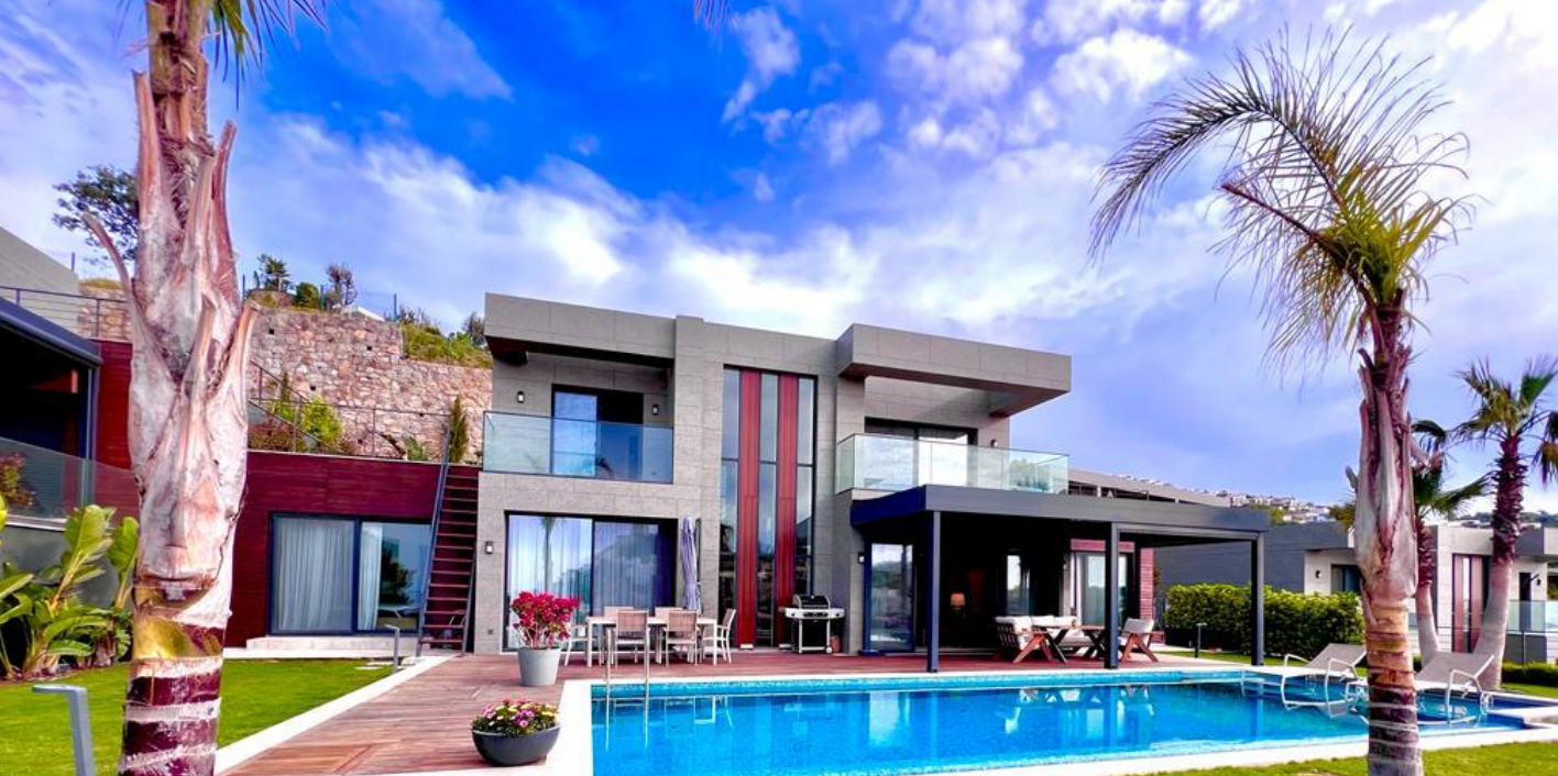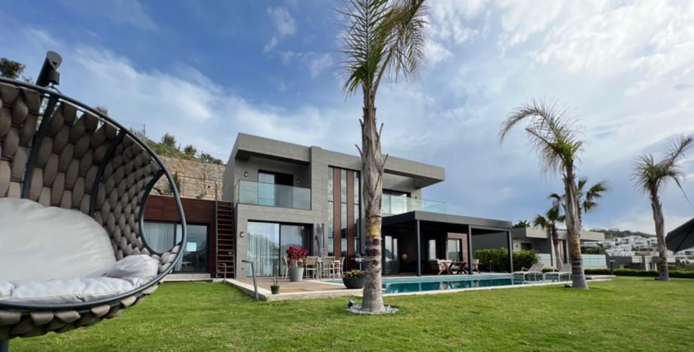 An elegant modern designed 5 Bedroom Villa set upon a hillside in the beautiful Yalikavak. A small development of only 13 individual villas set within landscaped gardens all offering stunning sea views.
