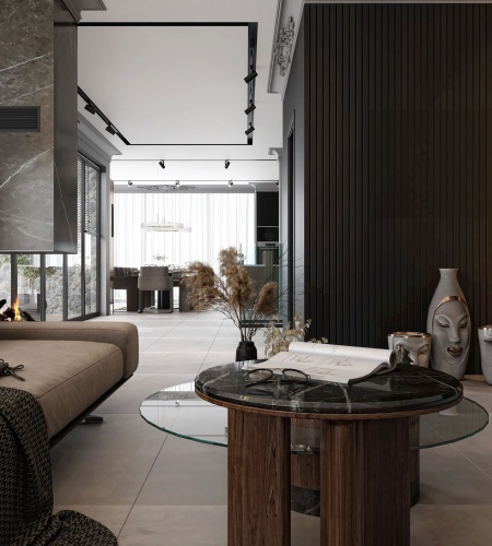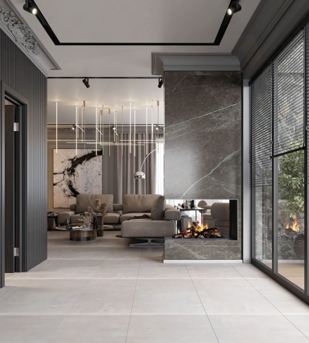 Living area with fireplace