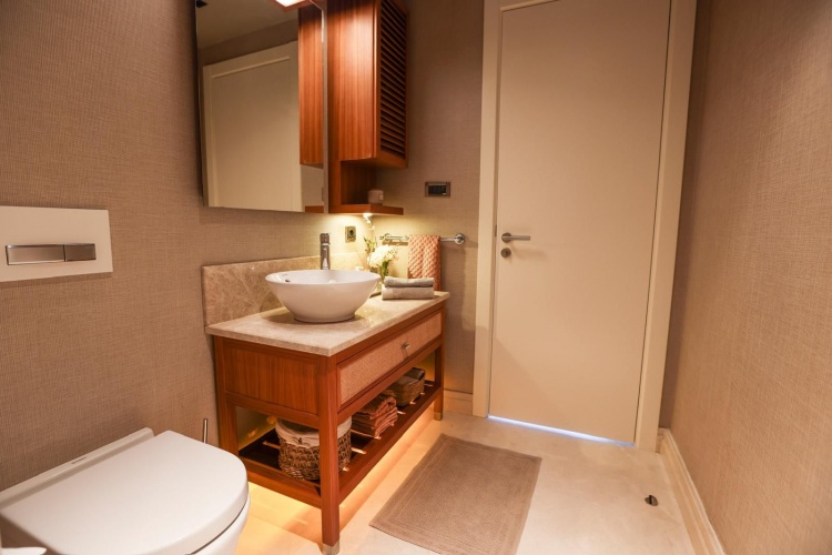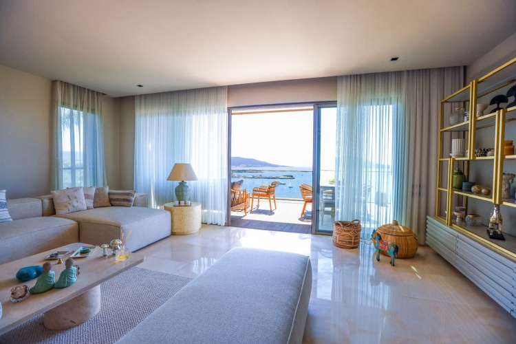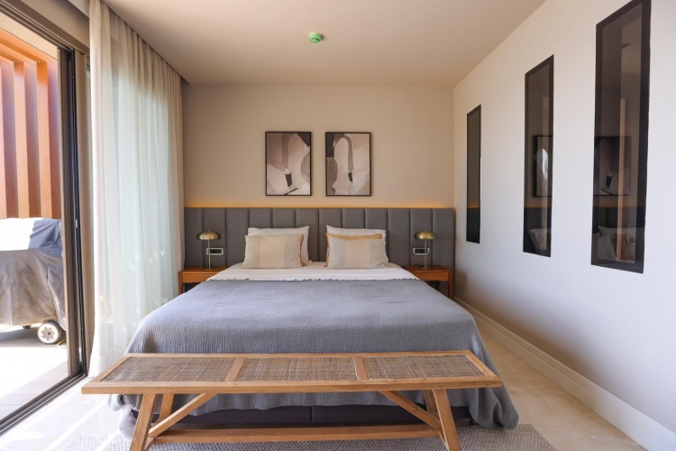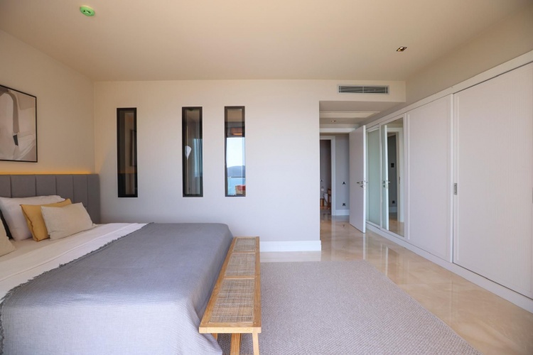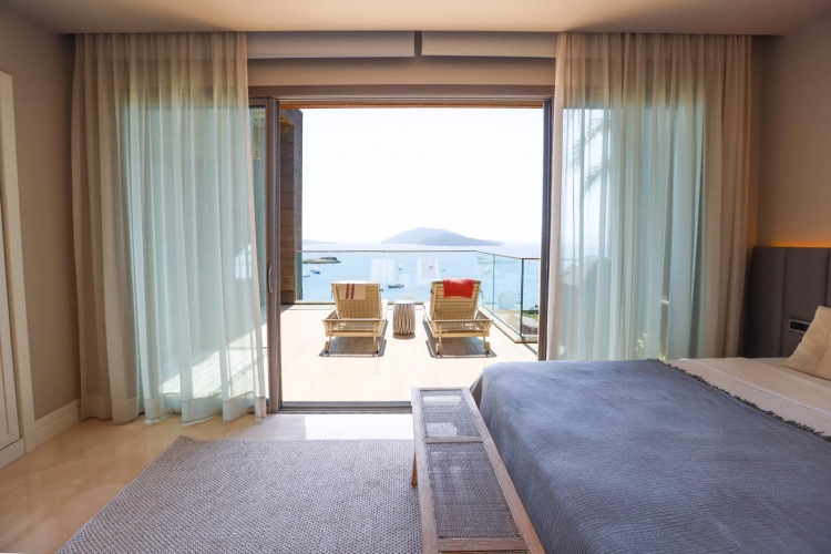 The residence windows extend from floor to ceiling and reveal the most iconic views of Bodrum. The master bedroom of the residence is one of the most beautiful points of the house with its sea view and terrace.