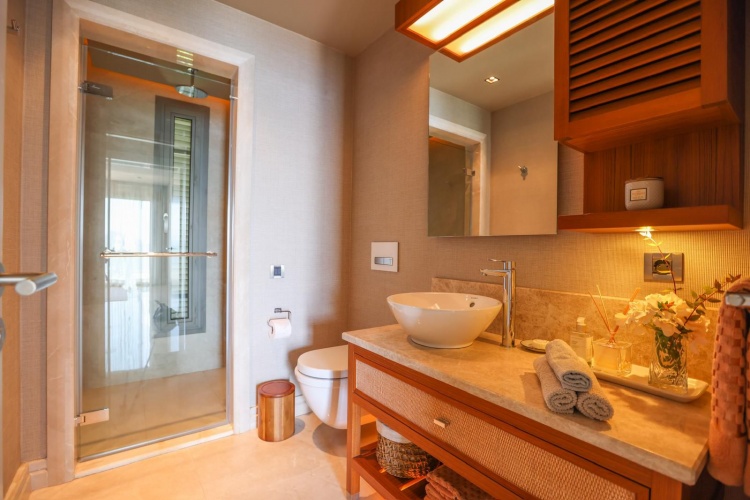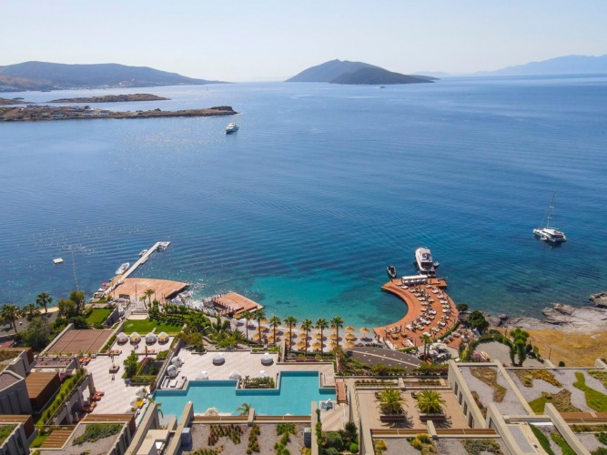 Located in Bitez, the heart of Bodrum, this exclusive branded residence offers everything you need for an ideal stay. The facility, which is right on the seafront and has the comfort of a 5-star hotel, includes a private beach, sun terraces, indoor and outdoor pools, Spa, gym, lobby and common entertainment and recreation areas, Kids' Club, children's playground, shops, restaurants, bars and a cafe.