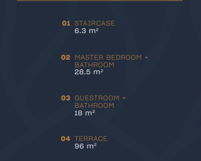 Total Net without Terrace: 145 m2 - Total Net with Terrace: 352 m2