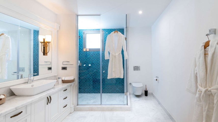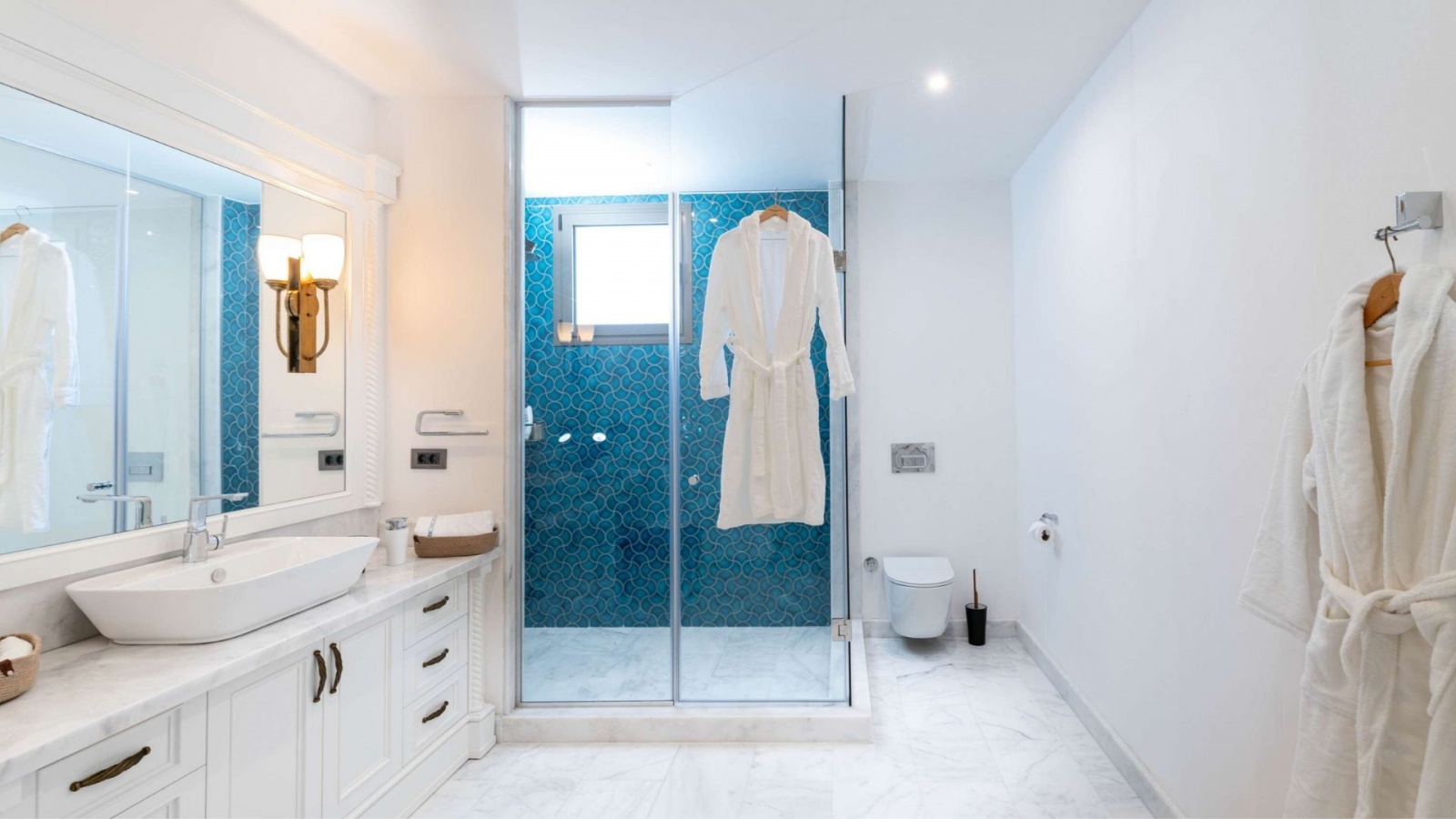 • The grand master bedroom spans 80m² and boasts his and hers en-suites, walk-in closets, and a spacious balcony overlooking the sea and bay—a true sanctuary of tranquility.