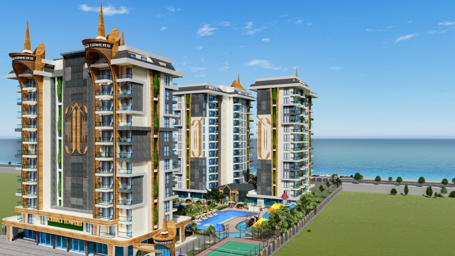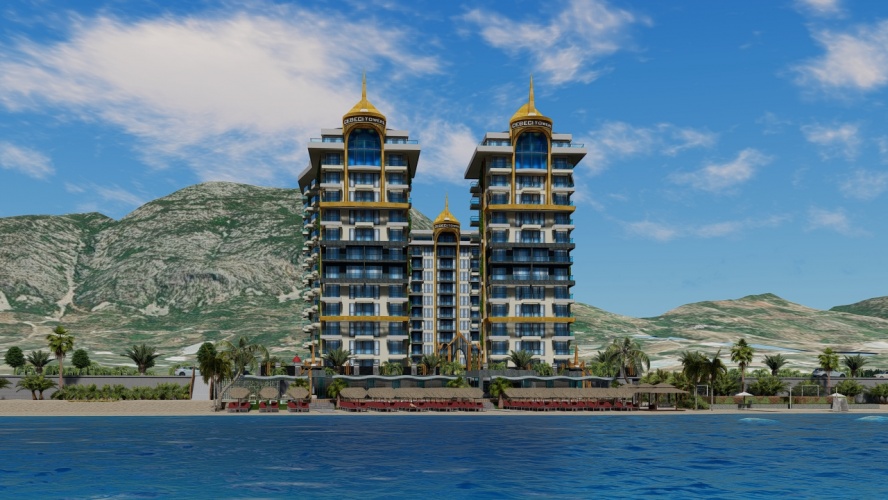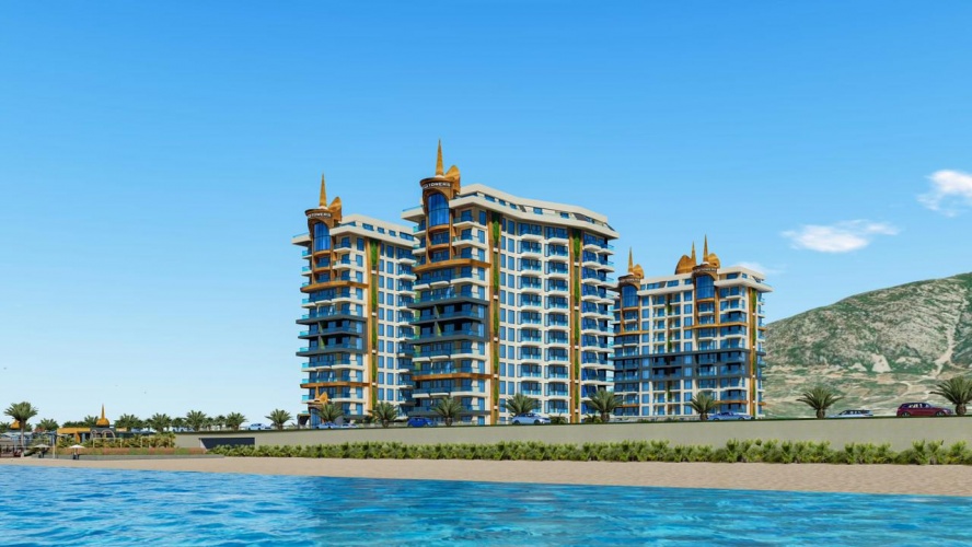 A luxurious sea front development of apatments with sea views and private beach in the Mahmutlar area of Alanya. Various configurations are available between 141,000 Euros for a 60 SQM 1+1 Apartment and 850,000 Euros for the luxury 270 SQM 4+1 penthouse suite.