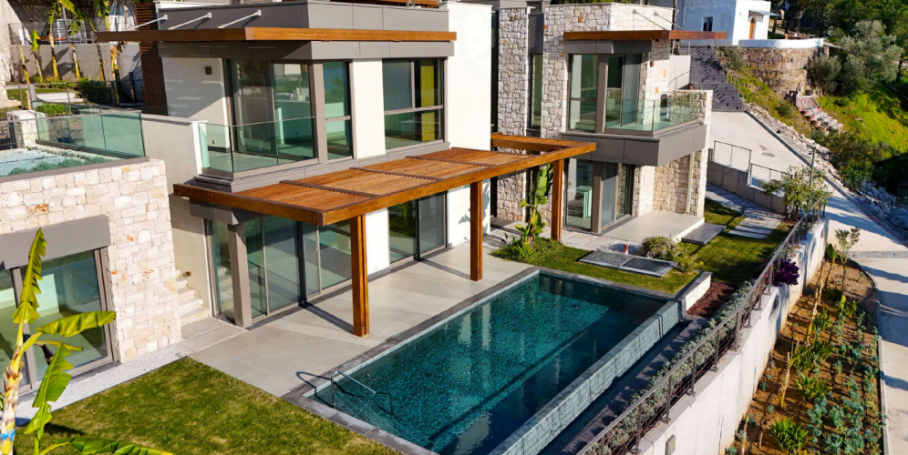 One of the most privileged projects of Bodrum with its endless sea view, modern architectural details and private beaches, this development includes simplex apartments with garden or terrace use and 3 + 4 Bedroom Detached Villas with 1 + 2 Living Areas. Some Villas have private swimming pools.