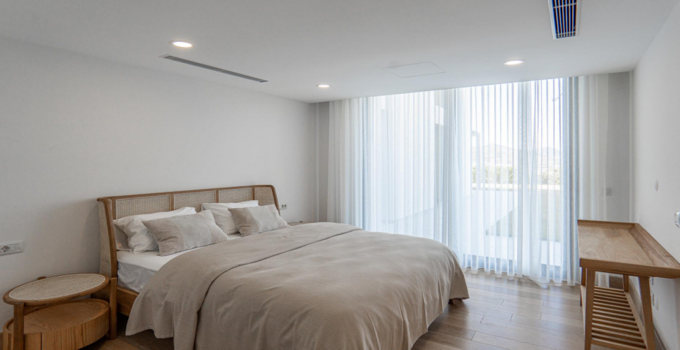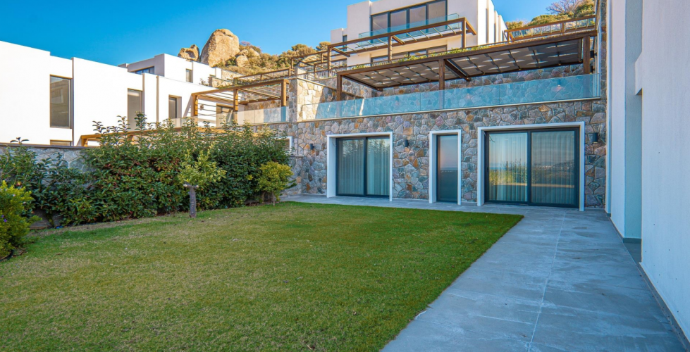 Set within an area of 8870 m2 . The plots of specially designed villas vary between 600 and 700 m2 . Each villa has an underfloor heating system, heat pump and concealed ceiling type VRF air conditioning so that you can live in peace and comfort throughout all seasons.