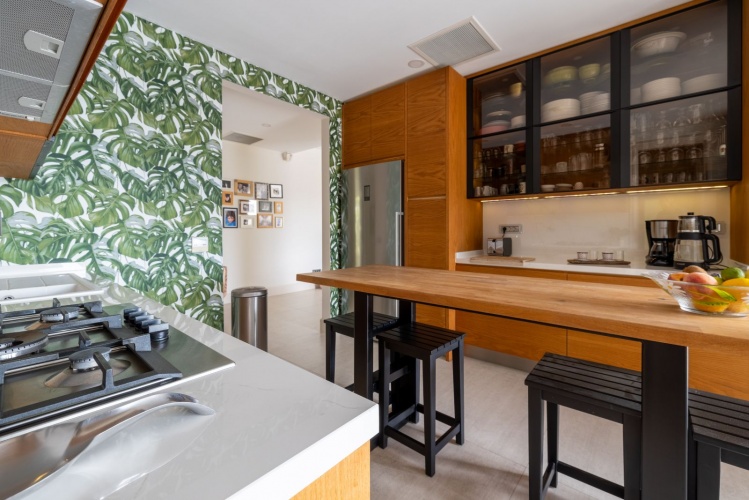The interior 190m2 has ample space to make private zones around the property with bedrooms opening up to private garden areas.